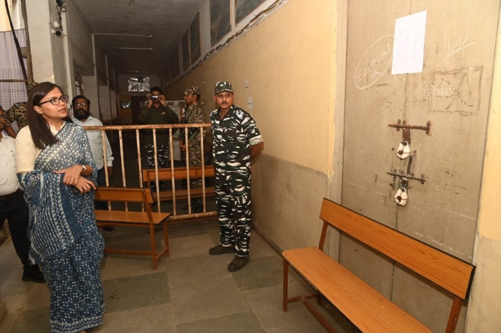 दुर्ग .... कलेक्टर एवं जिला निर्वाचन अधिकारी सुश्री ऋचा प्रकाश चौधरी ने आज श्री शंकराचार्य प्रोफेशनल विश्वविद्यालय जुनवानी भिलाई में स्ट्रांग रूम का निरीक्षण किया। लोकसभा निवार्चन 2024 मतदान पश्चात ईव्हीएम/वीवीपेट मशीनों को सुरक्षात्मक दृष्टिकोण से स्ट्रांग रूम में रखा गया है। कलेक्टर नें स्ट्रांग रूम के विधानसभावार कक्षोें का अवलोकन कर सुरक्षा व्यवस्था की जानकारी ली। उन्होंने परिसर में लगे एलईडी टीवी स्क्रीन में प्रदर्शित दृष्यों का भी अवलोकन किया। जिला निर्वाचन अधिकारी सुश्री चौधरी ने परिसर के बाहरी व्यवस्था के संबंध में नोडल अधिकारी श्री ध्रुव को आवश्यक दिशा निर्देश दिये। उन्होंने कहा कि विधानसभावार ए.आर.ओ. नियमित निरीक्षण करेंगे और वस्तु स्थिति से जिला निर्वाचन अधिकारी को अवगत कराएंगे। कलेक्टर ने परिसर में स्ट्रांग रूम के निगरीनी के लिए तैनात राजनीतिक दलों के प्रतिनिधियों से व्यवस्था आदि के संबंध में चर्चा भी की।