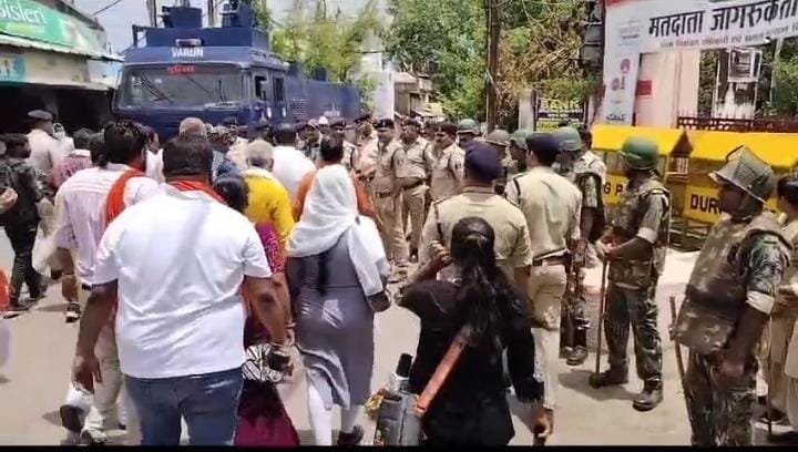 पुलिस प्रशासन द्वारा बलौदाबाजार में हुई घटना की सबक लेकर भारी पुलिस बल के साथ चाक चौबंद व्यवस्था कर रखी थी