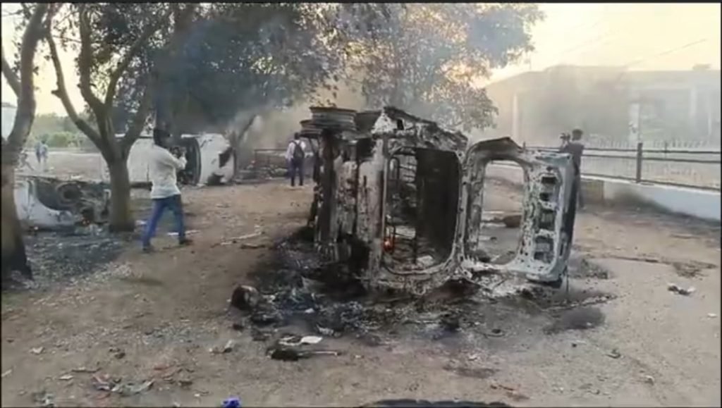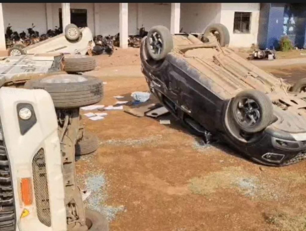 बलोदा बाजार…….छत्तीसगढ़ के बलौदाबाजार में सतनामी समुदाय के प्रदर्शन के दौरान सोमवार को जमकर हंगामा हुआ। लोगों ने कलेक्ट्रेट में खड़ी गाड़ियों में तोड़फोड़ की। इसके बाद भीड़ ने पथराव शुरू कर दिया। पथराव और गाड़ियों में तोड़फोड़ के बीच कुछ लोगों ने कलेक्ट्रेट में आगजनी की। इसके बाद लोगों की पुलिस और कर्मचारियों के साथ झड़प भी हुई।