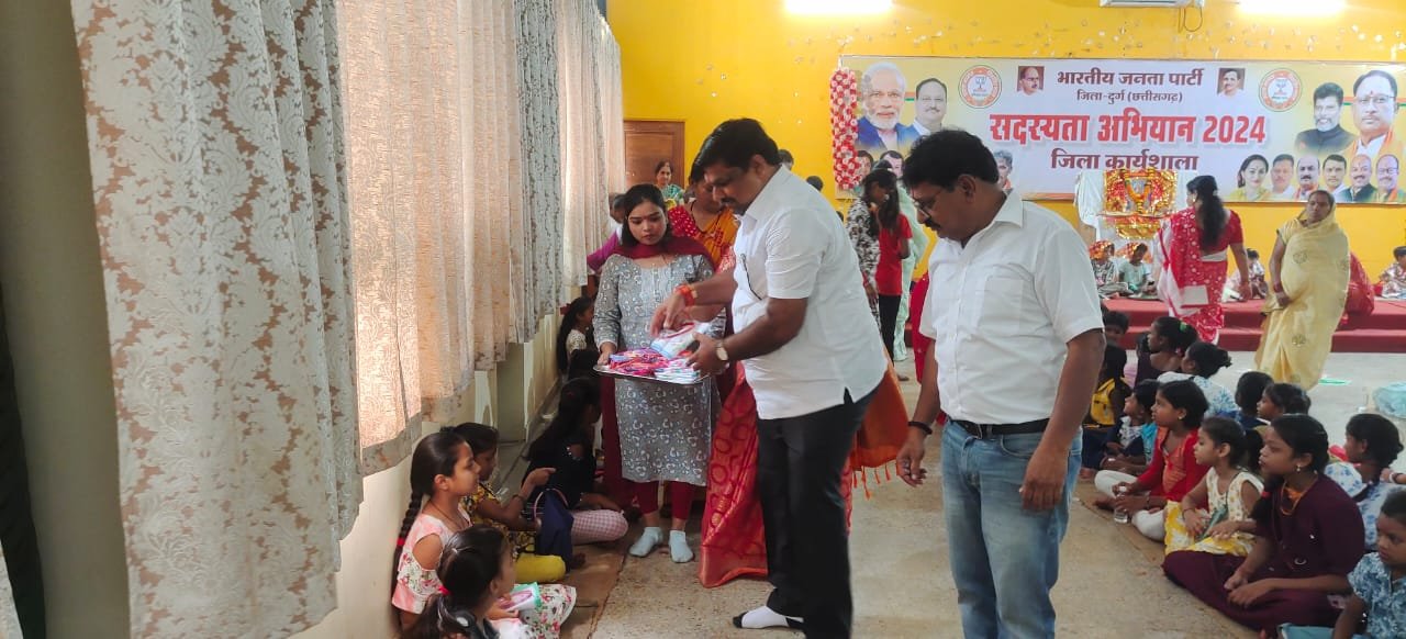 बेटी बचाओ पढ़ाओ के तहत नवरात्रि के पावन अवसर पर आज भाजपा कार्यालय में कन्या भोज में छोटी छोटी बच्चियां शामिल हुई। विधायक गजेन्द्र यादव, जिलाध्यक्ष सहित भाजपा पदाधिकारियों ने देवी स्वरूप कार्यालय पहुंची कन्याओ का पुष्प बरसाकर स्वागत कर उनका पैर धुलवाये। हॉल में कतार से बैठी कन्याओ को चुनरी ओढ़ाकर कन्याओ का आरती लेकर चंदन तिलक लगाए और भोजन प्रसादी हेतु आमंत्रित किये। भोजन पश्चात् सभी कन्याओ को उपहार के रूप चूड़ी, बिंदिया सहित श्रृंगार का सामान भेंट कर सभी के सुख समृद्धि की कामना कर आशीर्वाद लिए। इस दौरान पूरा कार्यालय जय माता दी के जयकारे से गूँजता रहा। जिला संयोजक बानी सोनी, अल्का बाघमार, अजय तिवारी, रजनीश श्रीवास्तव, मानसी गुलाटी, दीपक देवांगन, मौसमी ताम्रकार, ज्योति नामदेव, राजेश्वरी वर्मा, सहित बड़ी संख्या में पदाधिकारी एवं कार्यकर्त्ता उपस्थित रहे।