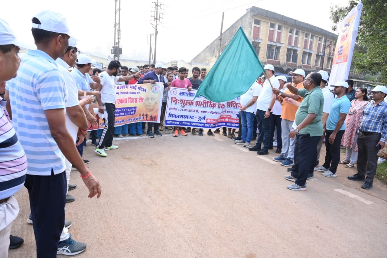 दुर्ग, कलेक्टर ऋचा प्रकाश चौधरी के निर्देशानुसार जिला खेल एवं युवा कल्याण विभाग दुर्ग द्वारा 30 अक्टूबर 2024 को प्रातः 7.30 बजे सरदार वल्लभभाई पटेल की जयंती के अवसर पर राष्ट्रीय एकता दिवस दौड़ का आयोजन किया गया। एकता के लिए दौड़ (रन फॉर युनिटी) को रविशंकर स्टेडियम दुर्ग के मुख्य गेट पर कार्यक्रम के अतिथि दुर्ग शहर विधायक गजेन्द्र यादव, महापौर धीरज बाकलीवाल, आयुक्त दुर्ग संभाग सत्य नारायण राठौर, सहायक कलेक्टर एम भार्गव, अपर कलेक्टर अरविंद एक्का, जिला पंचायत दुर्ग के सीईओ बजरंग दुबे, एस.डी.एम दुर्ग हरवंश मिरी, कमिश्नर नगर निगम दुर्ग लोकेश चन्द्राकर, एएसपी सुखनंदन राठौर, सीएसपी सत्यप्रकाश तिवारी, हरिश पाटिल सीएसपी, उत्तम ध्रुव डिप्टी कलेक्टर दुर्ग. आर के कुर्रे उपसंचालक रोजगार, अमीत घोष सहायक संचालक शिक्षा संभाग दुर्ग. तनवीर अकील सहायक जिला क्रीडा अधिकारी दुर्ग, एवं नीलकंठ वर्मा रक्षित निरिक्षक द्वारा हरी झंडी दिखाकर रवाना किया गया।