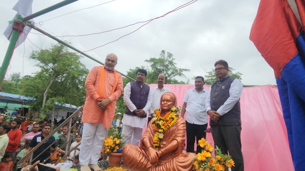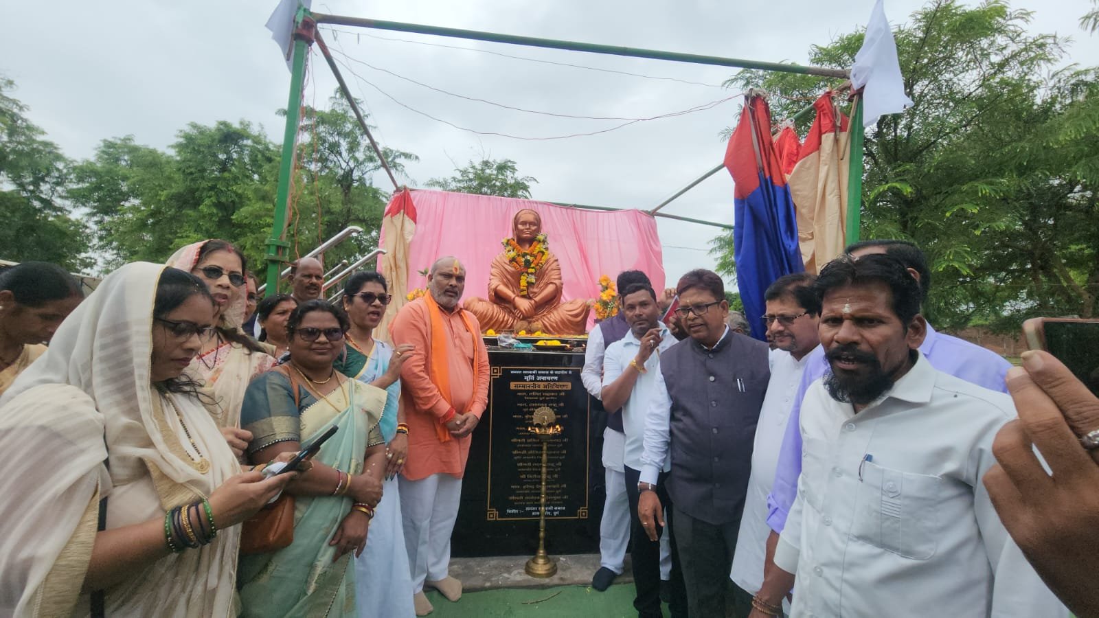 ग्राम थनौद में प्रदेश के प्रथम महिला सांसद मिनीमाता के मूर्ती का विधायक ललित चंद्राकर ने किया आनावरण