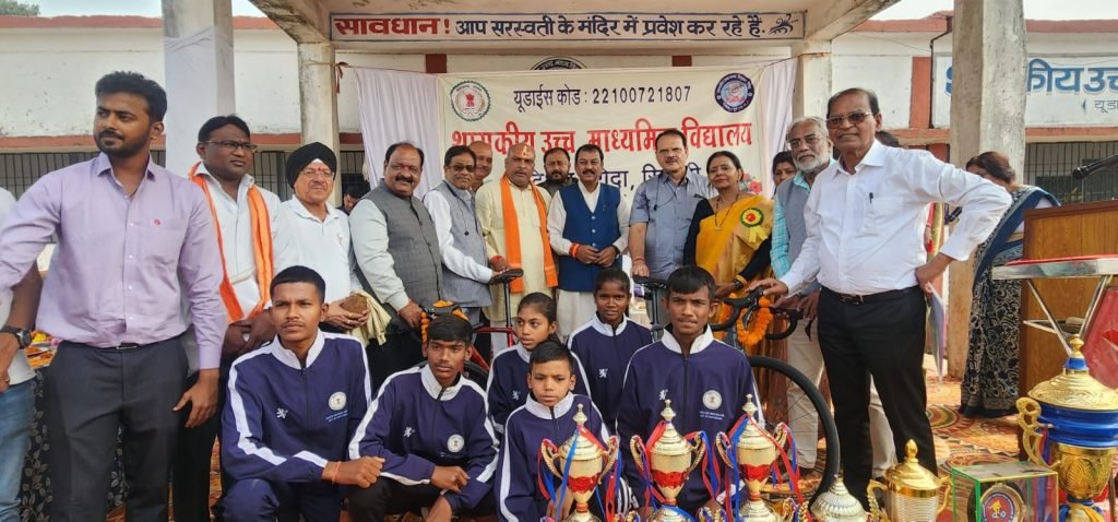 दुर्ग ग्रामीण विधानसभा अंतर्गत शासकीय उच्चतर माध्यमिक विद्यालय स्टेशन मरोदा में आयोजित संकुल स्तरीय पुरस्कार वितरण एवं सांस्कृतिक समारोह में दुर्ग सांसद श्री विजय बघेल और दुर्ग ग्रामीण विधायक व राज्य ग्रामीण एवं अन्य पिछड़ा वर्ग क्षेत्र विकास प्राधिकरण उपाध्यक्ष ललित चंद्राकर सम्मिलित हुआ। कार्यक्रम का शुभारंभ ज्ञान दायिनी मां सरस्वती के तैल चित्र पर माल्या रोपण अर्पित कर विधिवत पूजा अर्चना के साथ किया गया।कार्यक्रम में प्रतिभागियों का उत्साह देखते ही बन रहा था। साथ ही विभिन्न खेलों में उत्कृष्ट प्रदर्शन करने वाले प्रतिभाशाली खिलाड़ियों को प्रतीक चिन्ह, मेडल और प्रशस्ति पत्र प्रदान कर सम्मानित किया। सांस्कृतिक प्रस्तुतियों ने सभी का मन मोह लिया, जिसमें विद्यार्थियों ने नृत्य, संगीत और नाटक के माध्यम से अपनी प्रतिभा का अद्भुत प्रदर्शन किया। इस अवसर पर अतिथियों के द्वारा उपस्थित सभी शिक्षकों, विद्यार्थियों और अभिभावकों को हार्दिक शुभकामनाएं दी। यह आयोजन हर्षोल्लास के साथ संपन्न हुआ व ऐसे आयोजन बच्चों के सर्वांगीण विकास में महत्वपूर्ण भूमिका निभाते हैं साथ ही साइकिल पोलो जिसे साइकिल पोलो, बाइक पोलो भी कहा जाता है का खेल पारंपरिक पोलो के खिलाड़ियों को पुरस्कृत कर साइकिल प्रदान किया गयाइस अवसर पर दुर्ग ग्रामीण विधायक व राज्य ग्रामीण एवं अन्य पिछड़ा वर्ग क्षेत्र विकास प्राधिकरण उपाध्यक्ष ललित चंद्राकर ने कहा स्कूली जीवन में खेलों का बहुत ही महत्व है पढ़ाई के साथ-साथ खेल अति आवश्यक लेकिन आज हम प्रगतिशील और आधुनिक बनने के दौड़ में हम अपने स्वास्थ्य से खिलवाड़ कर रहे हैं। खेल का महत्व जैसे हम भूलते जा रहे हैं। आज के बच्चे मोबाइल, लैपटॉप और वीडियो गेम्स से ही खेलते हैं। परंतु खेल का महत्व बच्चों की बढ़ती ग्रोथ के साथ जानना आवश्यक है। खेल जितना स्वास्थ्य के लिए महत्वपूर्ण है, उतना ही खेल का महत्व पढ़ाई में भी है।आज जितने भी छात्र छात्राएं उपस्थित हैं उनसे आग्रह करना चाहता हूं जीवन में कोई ना कोई खेल अवश्य अपनाए ।इस अवसर पर दुर्गा सांसद विजय बघेल ने सभी खिलाड़ी को शुभकामनाएं प्रेषित किया और अपनी स्कूली जीवन को याद करते हुए बताया किस प्रकार कम संसाधन में हम नेशनल लेवल तक कबड्डी खेले हैं बहुत ही सीमित संसाधन होता था पैर में जुटे नहीं होते थे लेकिन खेल भावनाओं के साथ खेलने की ललक ने अपने मुकाम को हासिल किया आज सभी जगह सुविधा उपलब्ध हो गई है बस आप सभी को आगे आने की आवश्यकता है हमारी सरकार सदैव खिलाड़ियों को आगे बढ़ने का काम की और उनका हर सुविधा उपलब्ध कराने के लिए सदैव तत्पर है।इस अवसर पर जिला शिक्षा अधिकारी दुर्ग अरविंद मिश्रा , विनय राव चन्नावर , सेवानिवृत प