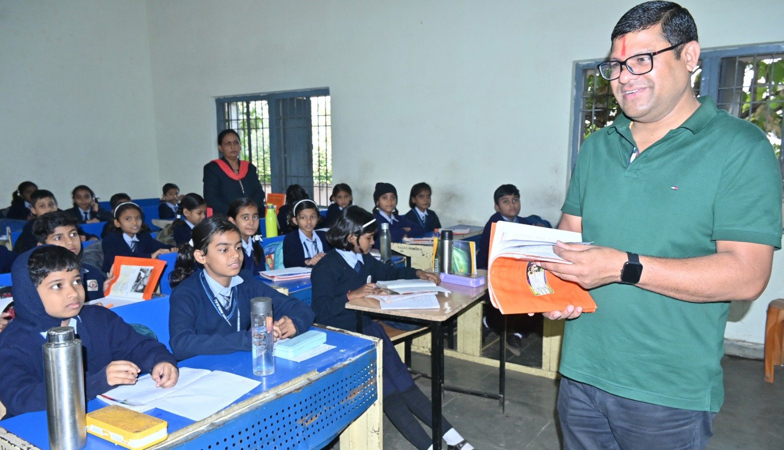 स्वामी आत्मानंद अंग्रेजी माध्यम स्कूल का औचक निरीक्षण करने पहुंचे, विद्यार्थियों को क्लास में पढ़ाये भी आयुक्त