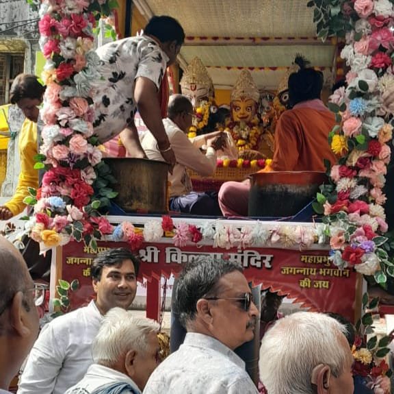 दुर्ग–भगवान जगन्नाथ की रथ यात्रा में नगर निगम महापौर धीरज बाकलीवाल शामिल हुए। उन्होने पूरे विधि विधान से भगवान जगन्नाथ, बहन सुभद्रा और भाई बलभद्र की पूजा अर्चना की।इस समय पार्षद व एनआईसी सदस्य दीपक साहू,भोला महोबिया भी रथ यात्रा में शमिल हुए।आज किला मंदिर प्रांगण तमेरपारा दुर्ग एवं श्री राम जानकी मंदिर से निकाली गईं भगवान जगन्नाथ जी की रथ यात्रा में शामिल होने का एवं आरती करने का सौभाग्य प्राप्त हुआ।महापौर संग पार्षद साथियों ने भी जगन्नाथ की रथ यात्रा के समय झाड़ू लगाकर सफाई की।रथ यात्रा में शामिल होने के दौरान महापौर धीरज बाकलीवाल ने कहा कि हर वर्ष की तरह इस साल भी भगवान जगन्नाथ रथ यात्रा में शामिल होने का सौभाग्य मिला है।भगवान जगन्नाथ शहरवासियों और प्रदेशवासियों के जीवन में खुशहाली दे