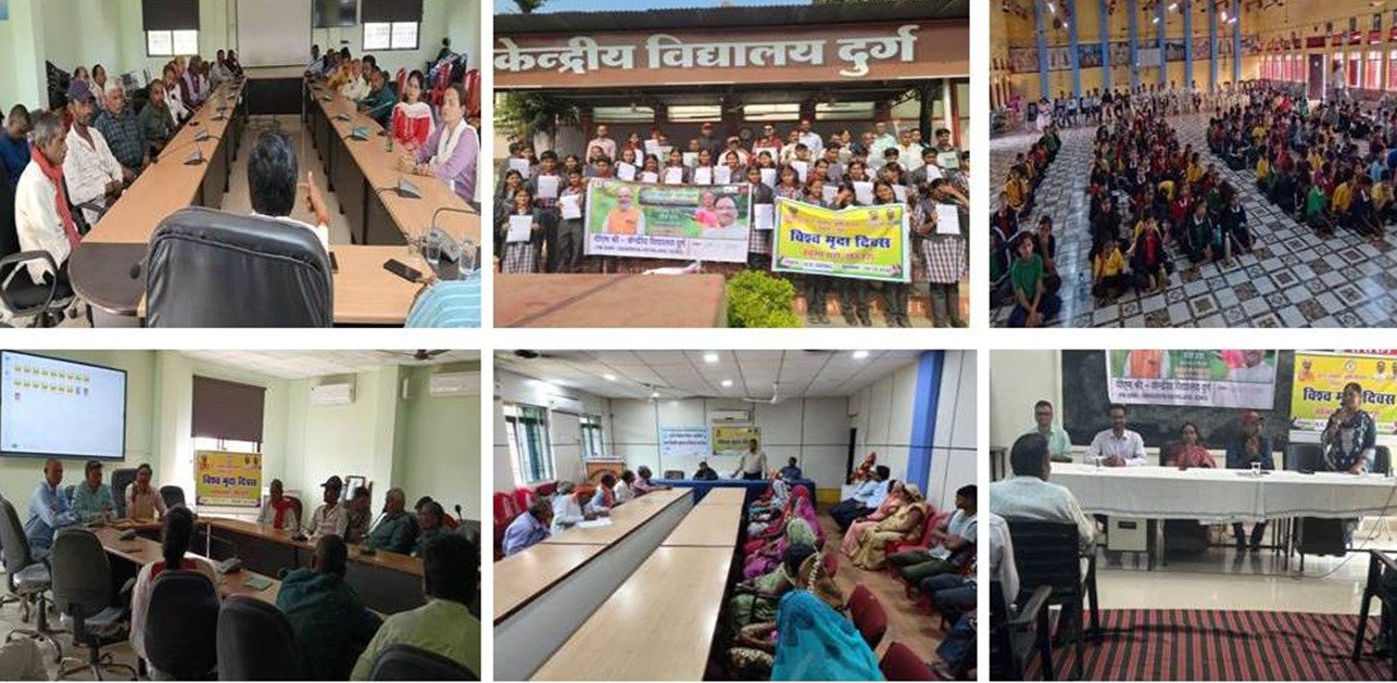 दुर्ग | विश्व मृदा दिवस के अवसर पर ’’स्वथ्य धरा तो खेत हरा’’ आधारित मौजूदा मृदा स्वास्थ्य कार्ड लोगों का उपयोग कर अभियान के रूप में चलाये जाने के निर्देश के परिपालन में आज जिले में 04 स्थानों पर क्रमशः कृषि विज्ञान केन्द्र अंजोरा, कृषि विज्ञान केन्द्र पाहंदा (अ), केन्द्रीय विद्यालय दुर्ग एवं जवाहर नवोदय विद्यालय बोराई में कार्यशालाओं का आयोजन किया गया है।